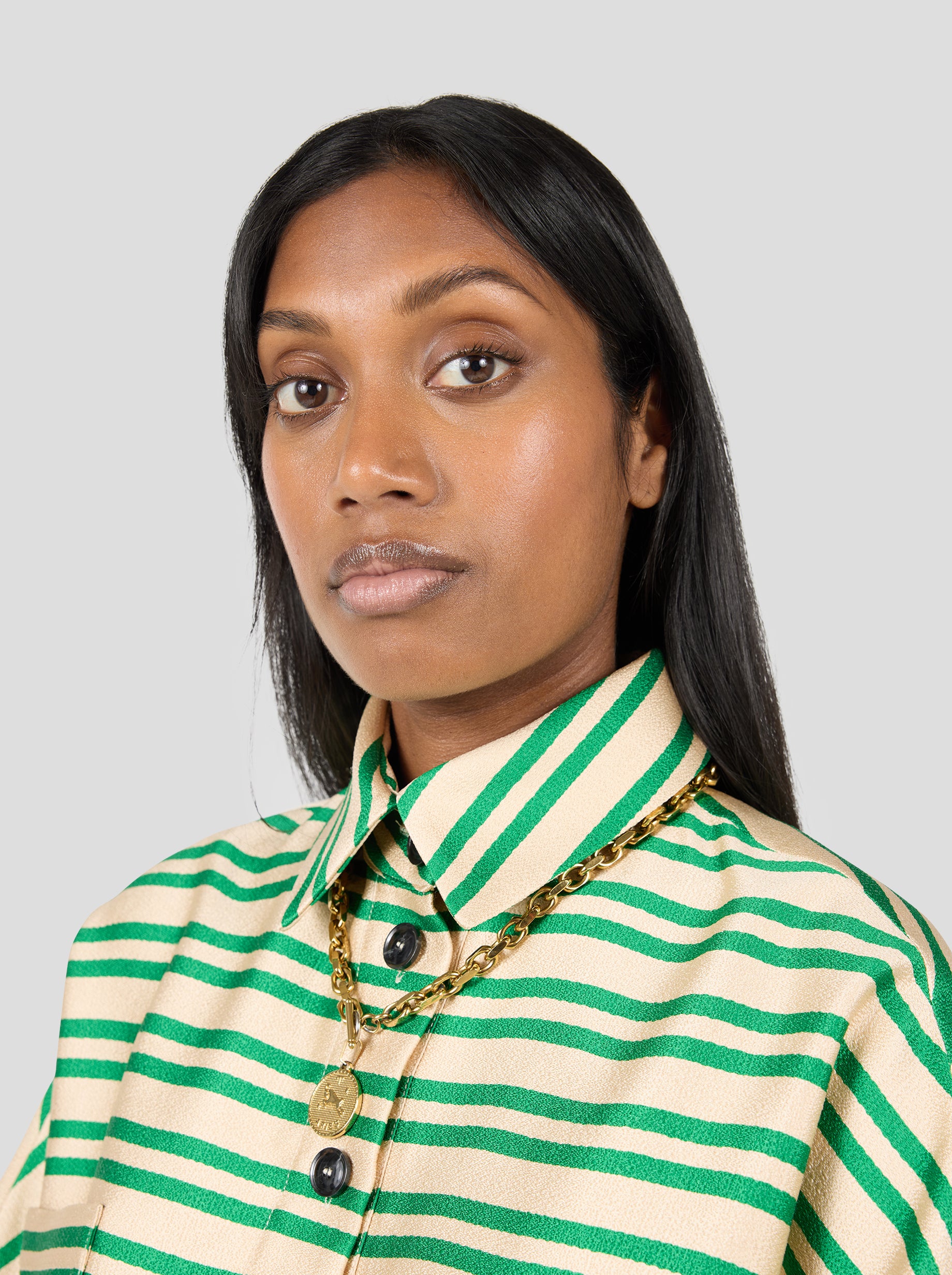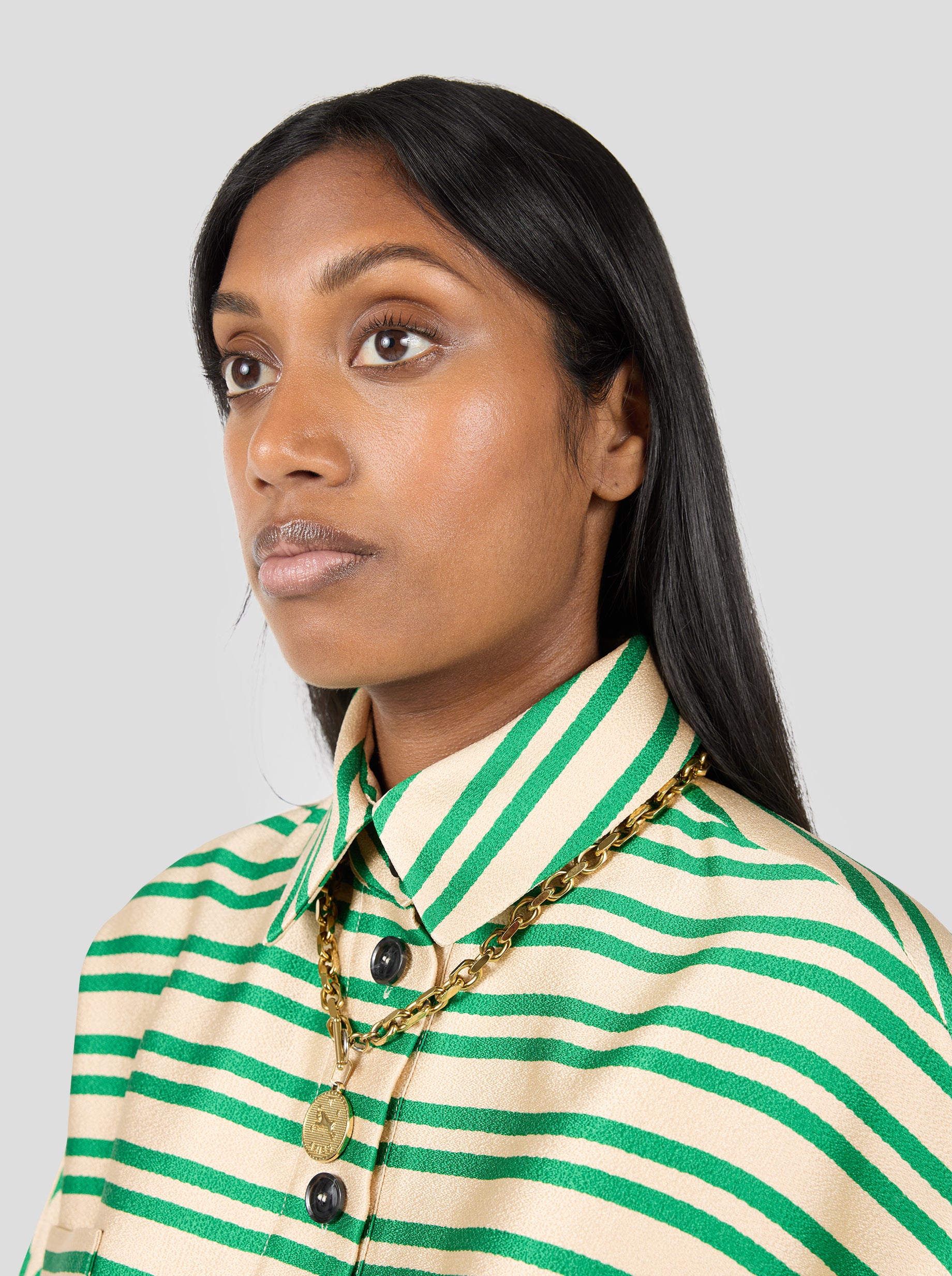 Complete the look: Milo Dress in Bold Green Striped toile + these