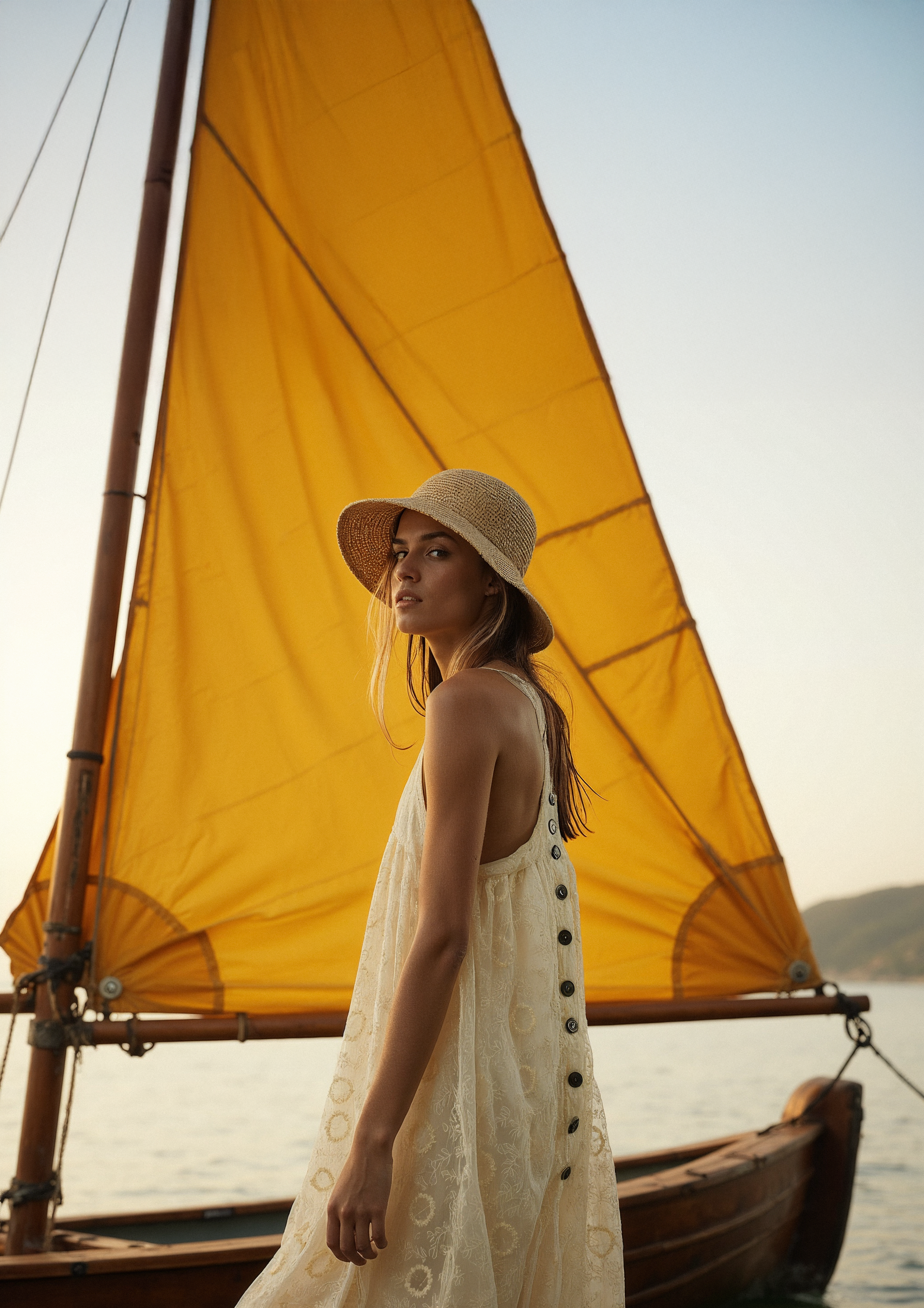 The Stella dress is a long, romantic piece designed to be worn effortlessly every day. Sleeveless, with a round neckline and a full button placket down the back, it reveals a fluid silhouette that balances relaxed comfort with feminine sophistication. It offers comfort, elegance, and freedom of movement, while still allowing for a bra to be worn.