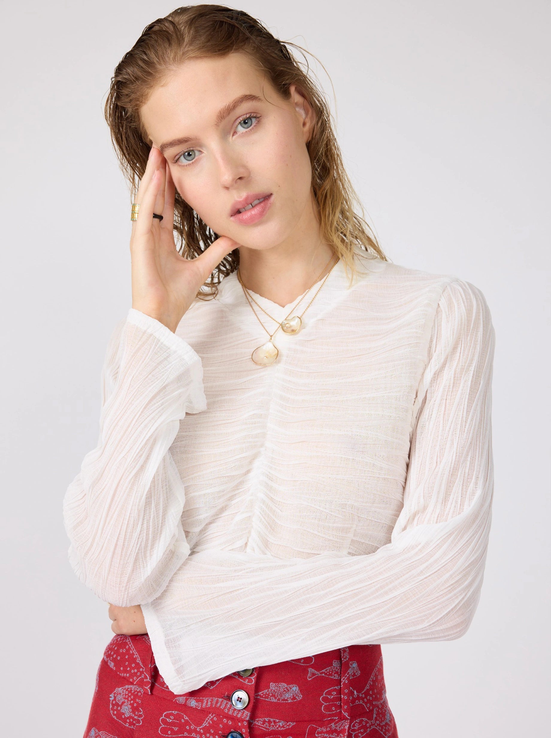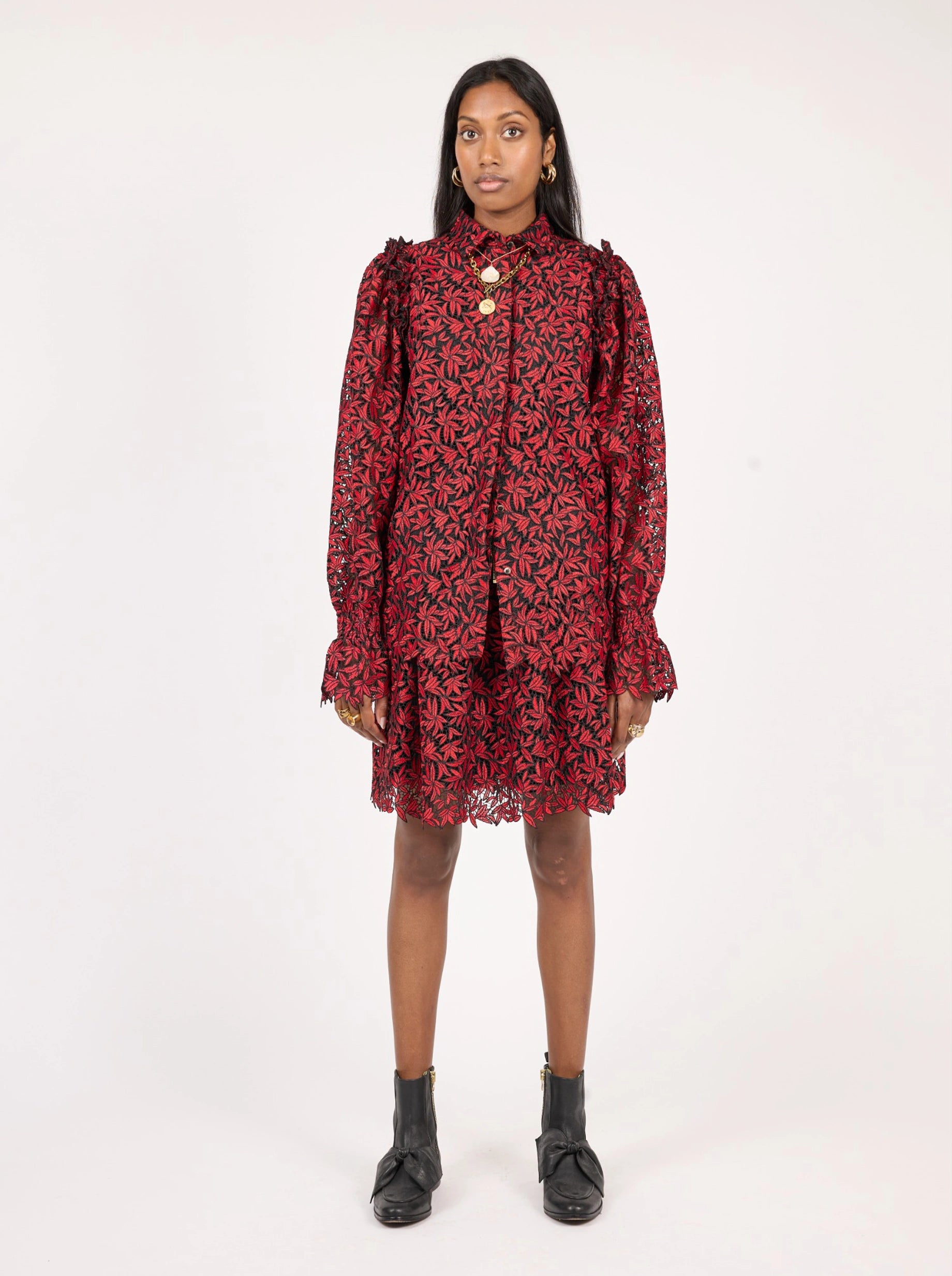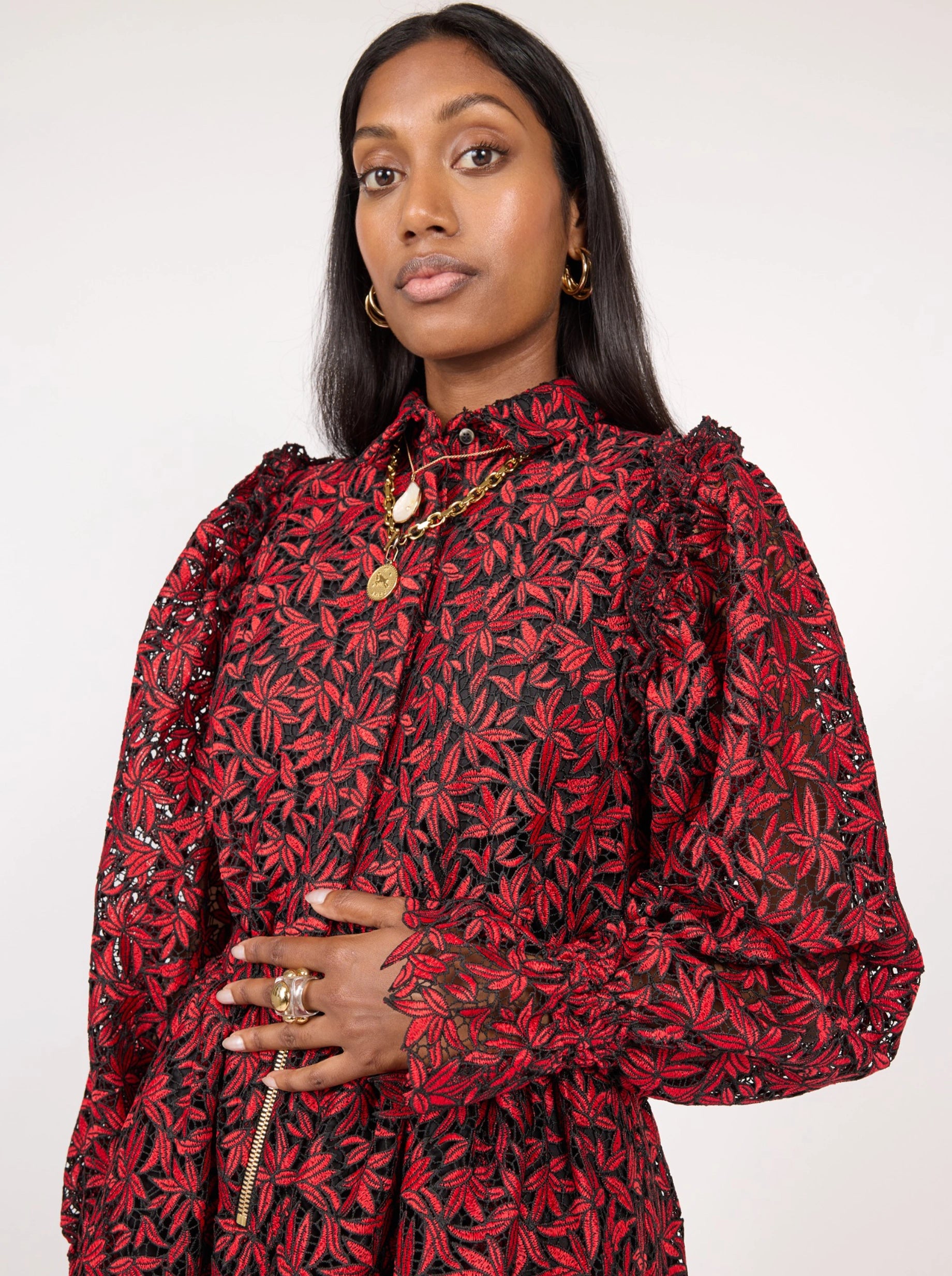 The first capsule, Rubis, embodies a fresh start to the year—an invitation to reinvent oneself, embrace contradictions, and unveil a renewed version of individuality. Like the precious stone it is named after, this collection stands out with its brilliance, depth, and intensity, playing with deep red tones that exude a sense of power and sensuality. The silhouettes blur the boundaries between a bold, masculine wardrobe and a delicate, timeless femininity with an airy, ethereal touch. Our latest wardrobe collection introduces eleven carefully crafted pieces that blend romance with bold sophistication. Among the highlights is the Angus Blazer, a design inspired by the fearless businesswomen of Wall Street. With its masculine cut, bold shoulder pads, and a sharply structured silhouette, the Angus Blazer is a modern
