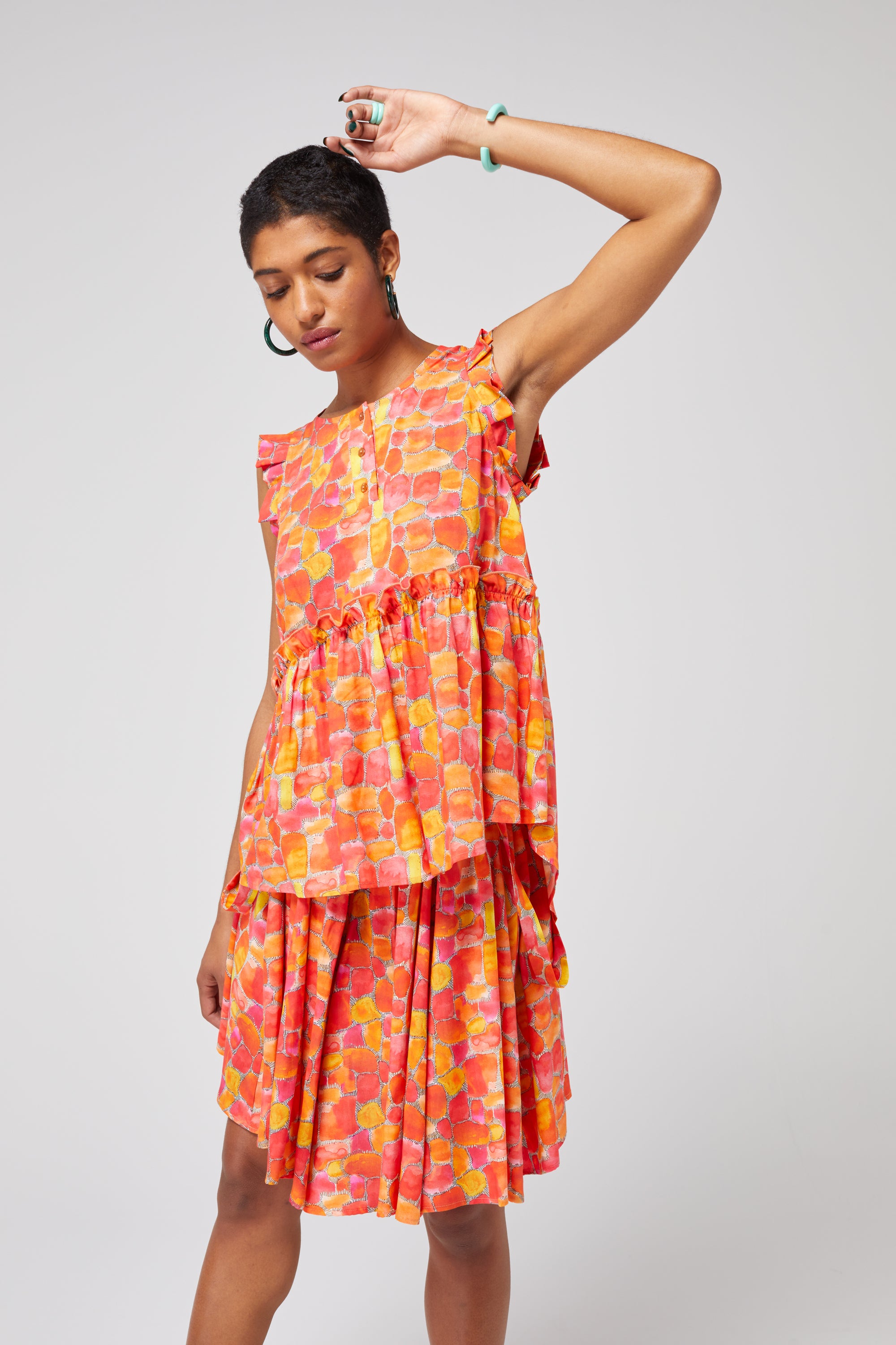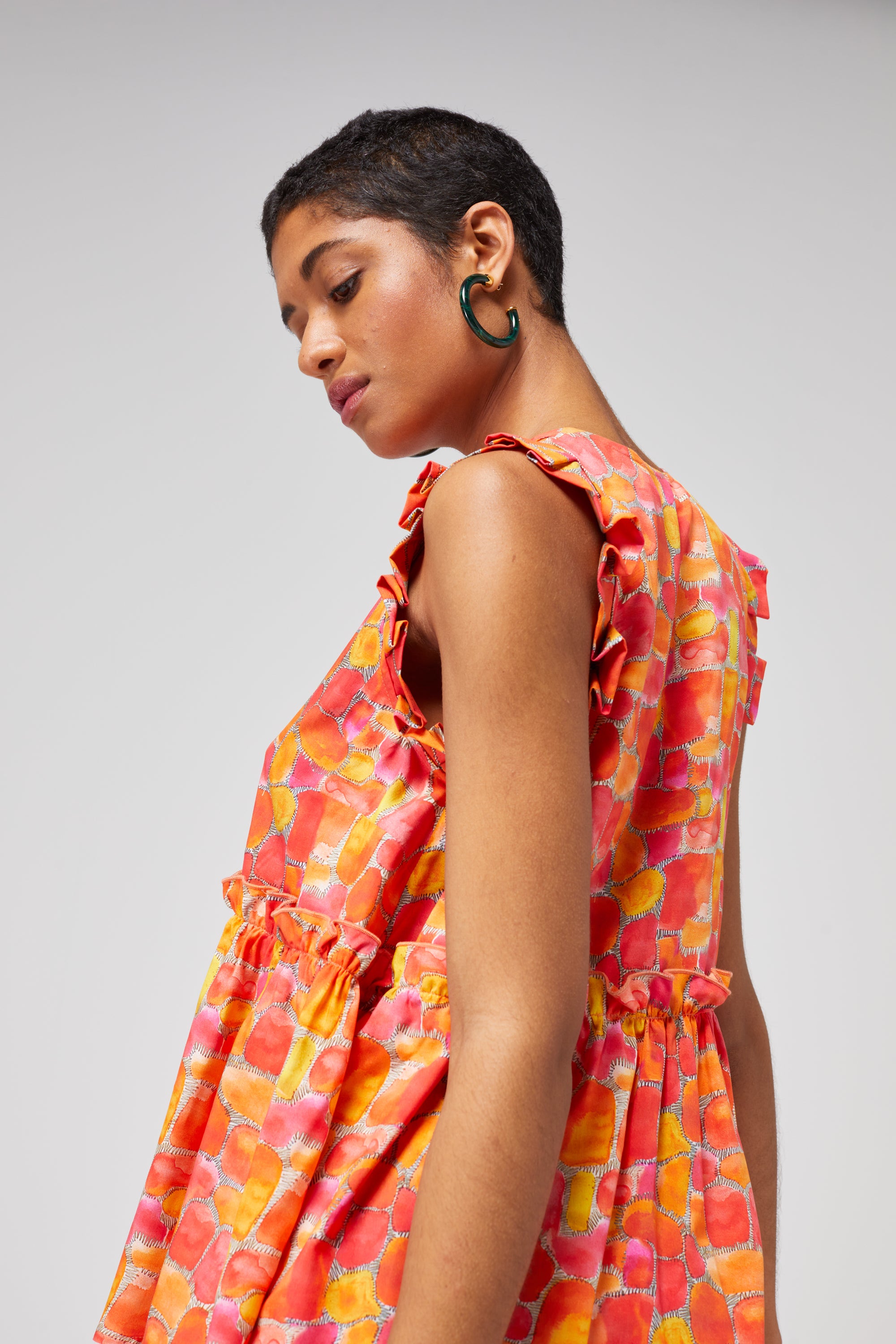 The Kaya blouse is a loose and long easy-to-wear top. It can replace your day to day black tee-shirt. It is design in a fluid fabric that creates a flowy fallen once worn. The matte finish of the fabric makes it smooth on the skin and reminds us of a cotton feel. Very airy, bold and colorful at the same time, the Kaya shirt in Sun Kiss print if a good addition to any wardrobe.