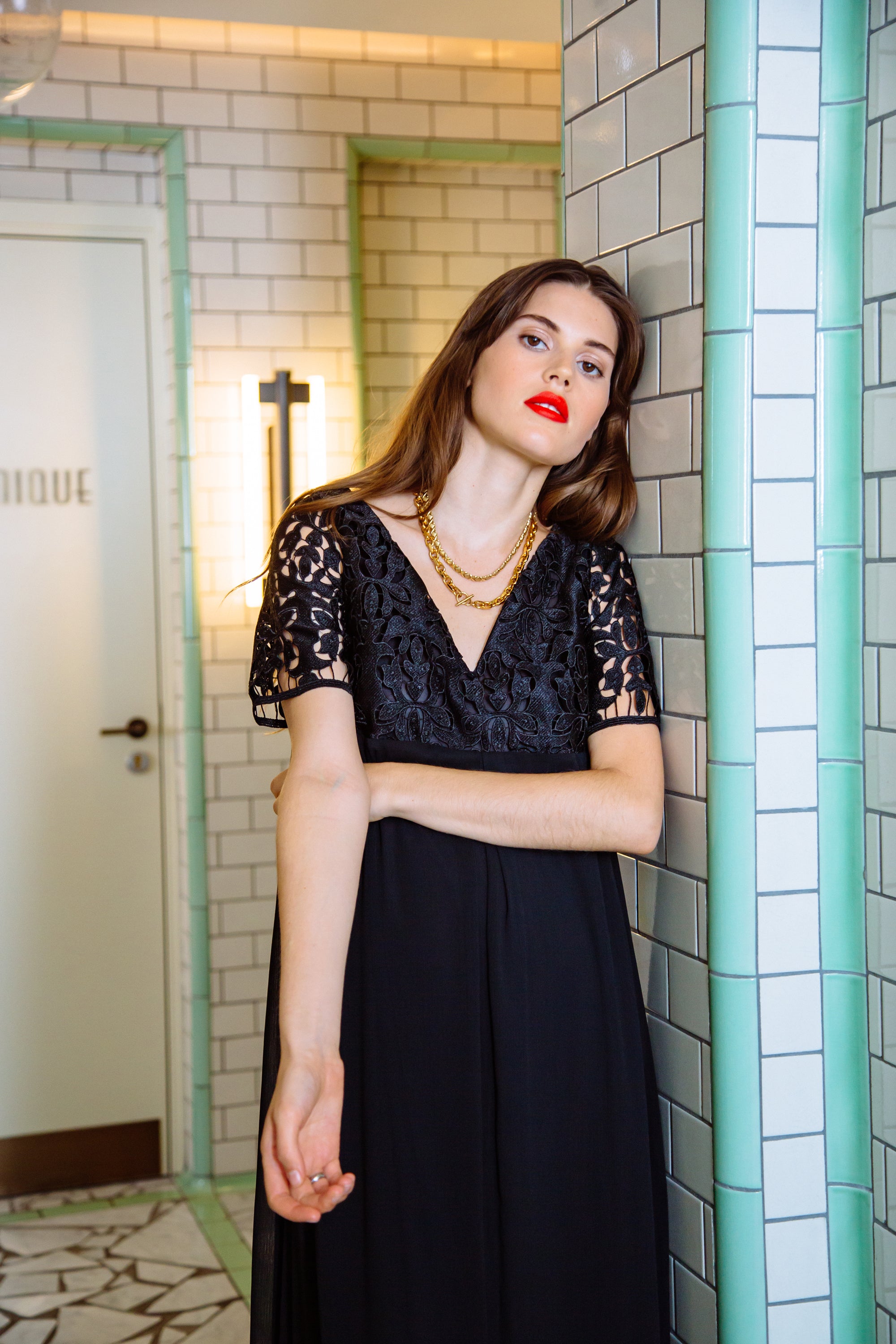 The Mara dress is a new style from Heimstone's collections. It is a long and vapourous dress with a delicate neckline.