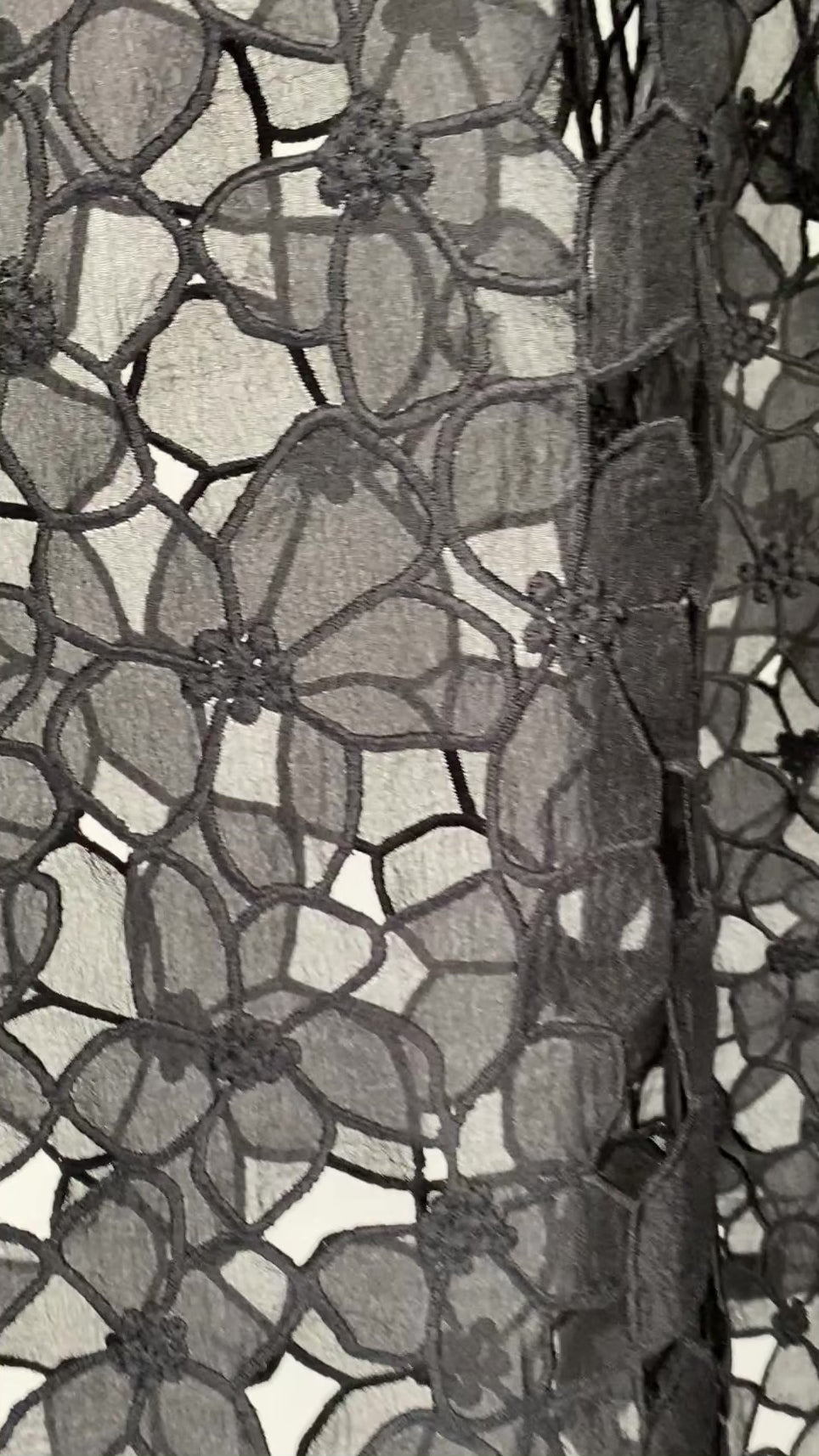 About the fabric: The black Laurier Brûlé lace shapes a silhouette that’s both bold and radiant, while maintaining a delicate feel thanks to its finely crafted openwork pattern