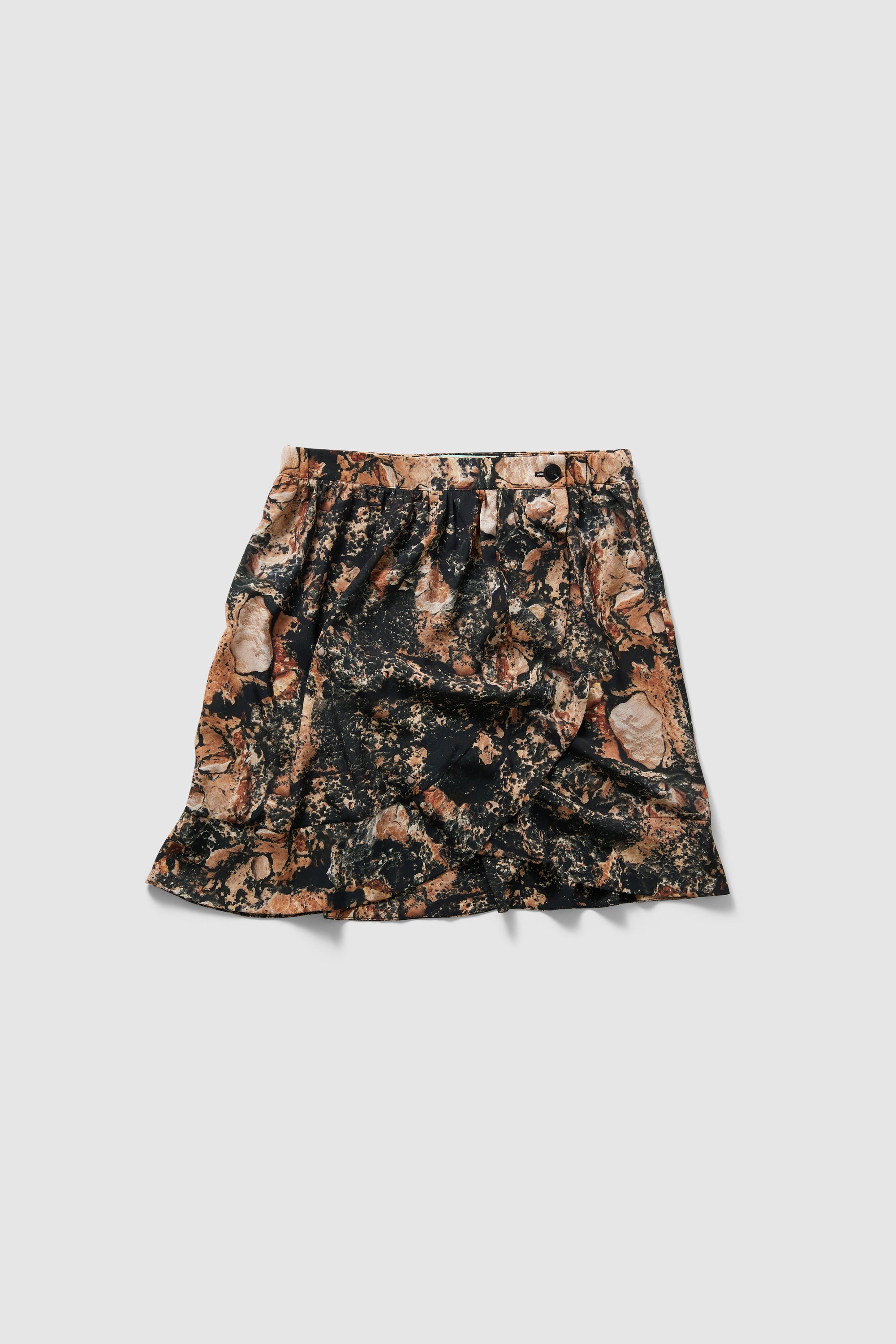 A second Austria skirt, a second mood. Declined in a soft and matte polyester with the Trail print, this piece plays with soft and powerful colors at the same time. Elevated to the rank of our iconic piece, it is easy to match and offers a shorter alternative for an assumed femininity.
