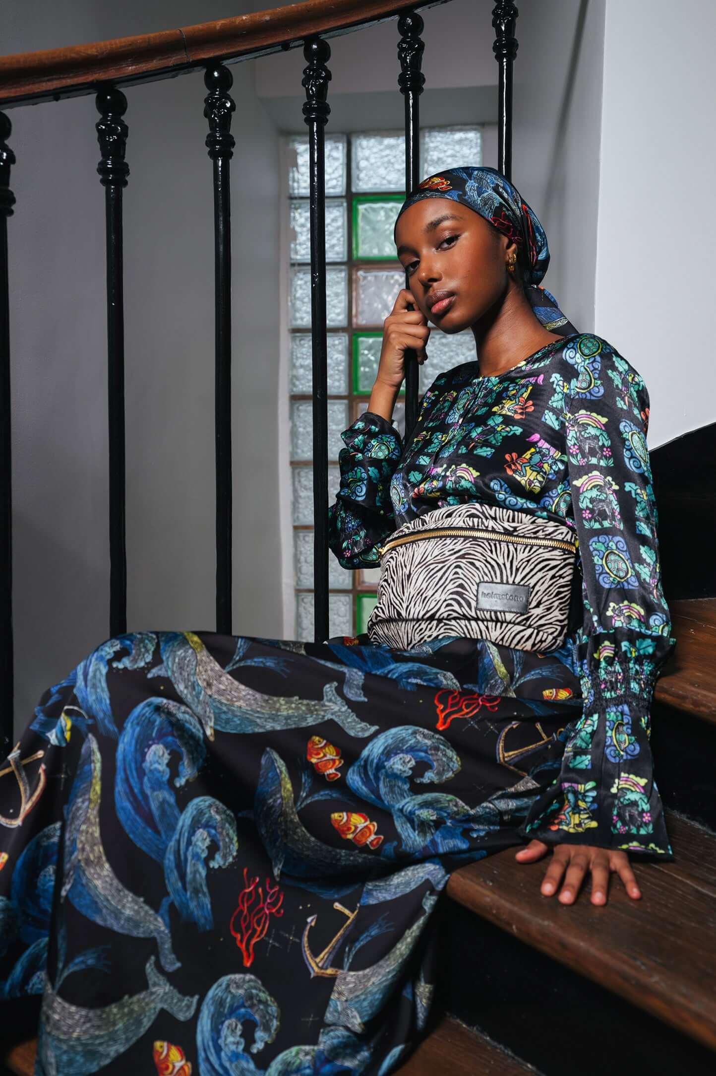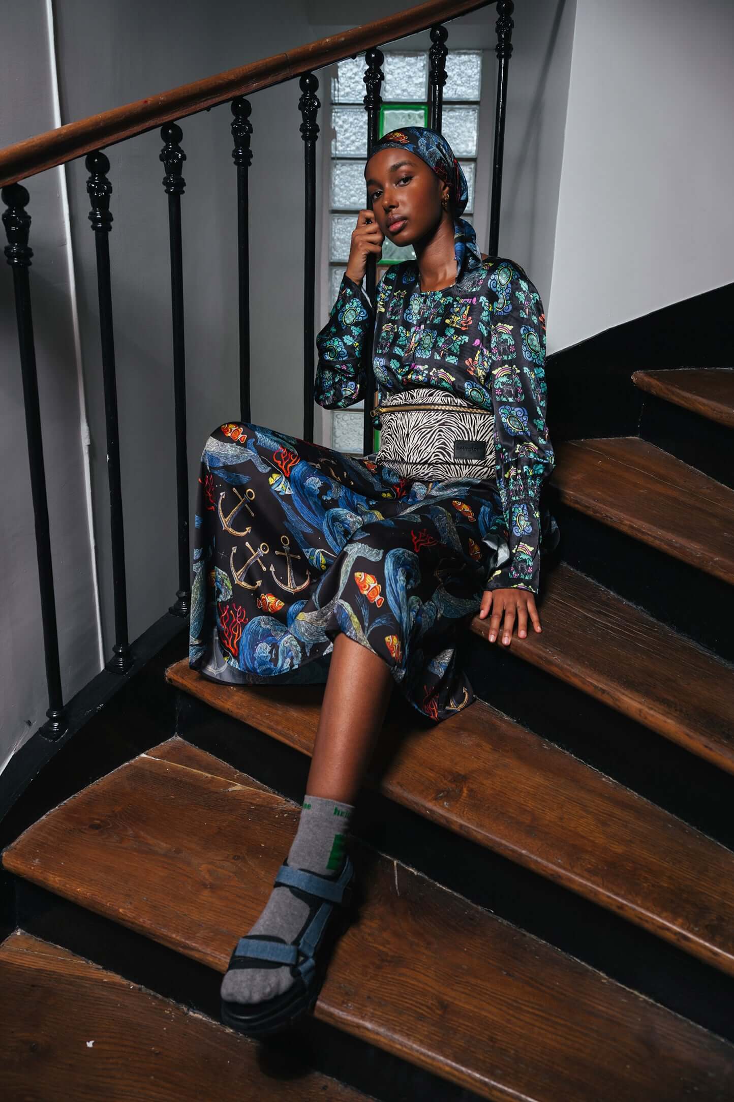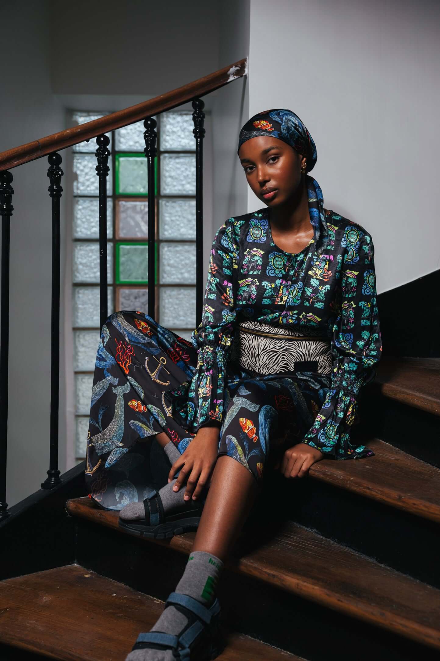 Cette blouse Panda affiche l'imprimé Moonlight, composée d'une succession de petits dessins bucoliques. Réalisée dans une viscose légère, elle suit un léger tombé, sublimé par de longues manches froncées et sa taille subtile à volants.