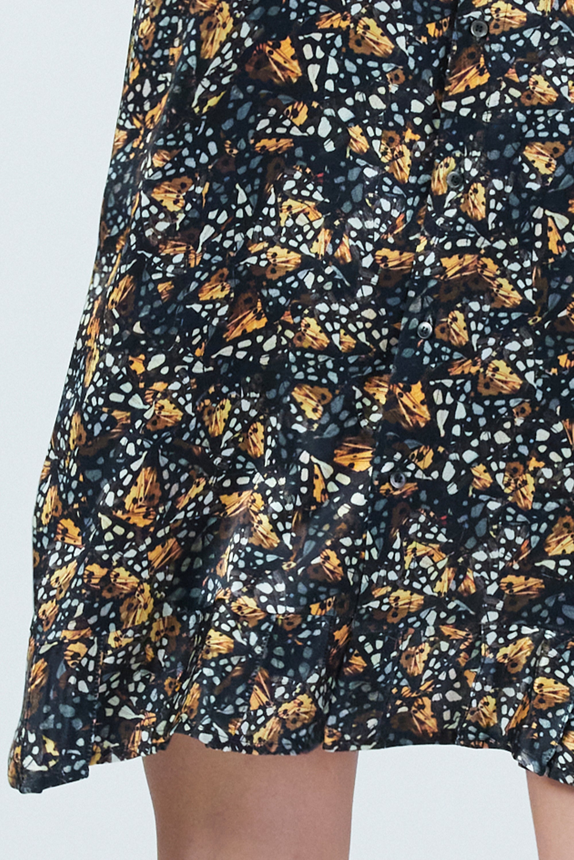 Si proche de la chemise Muse, mais en même temps, si éloignée. La robe Muse reprend ce style classe et élevée de la chemise Muse avec son col audacieux qui joue à la fois avec la légèreté et la hauteur, à laquelle s'ajoute une jupe large et virevoltante. Le tout fini par un imprimé Hunter des plus hypotisants, avec une palette de couleur ambrée et lumineuse, si chère à l'automne.