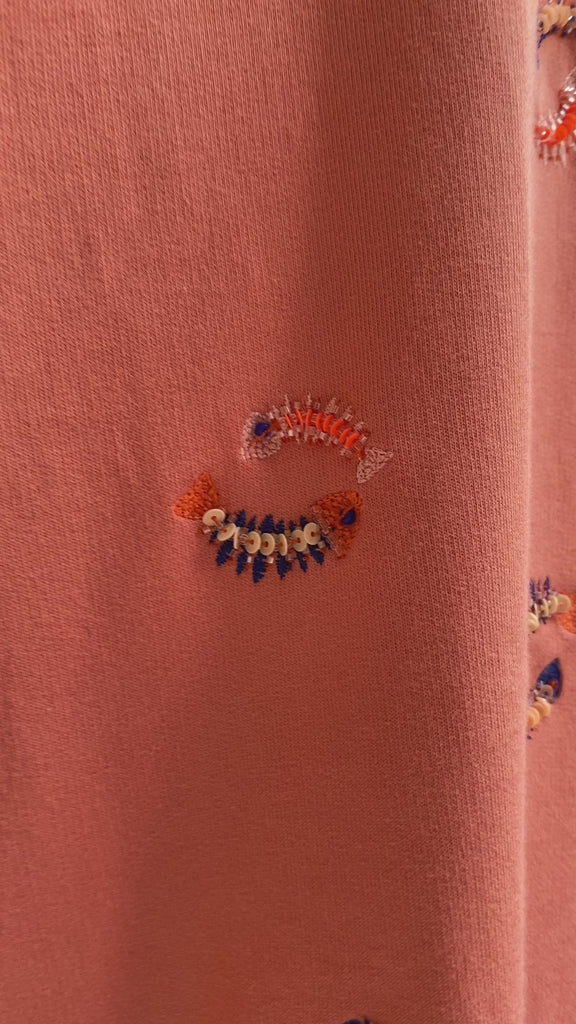 Les broderies sont des arêtes de poissons, chaque piece nécessitte 18 heures de broderie, faite par les mains minutieuses de notre atelier Indien.