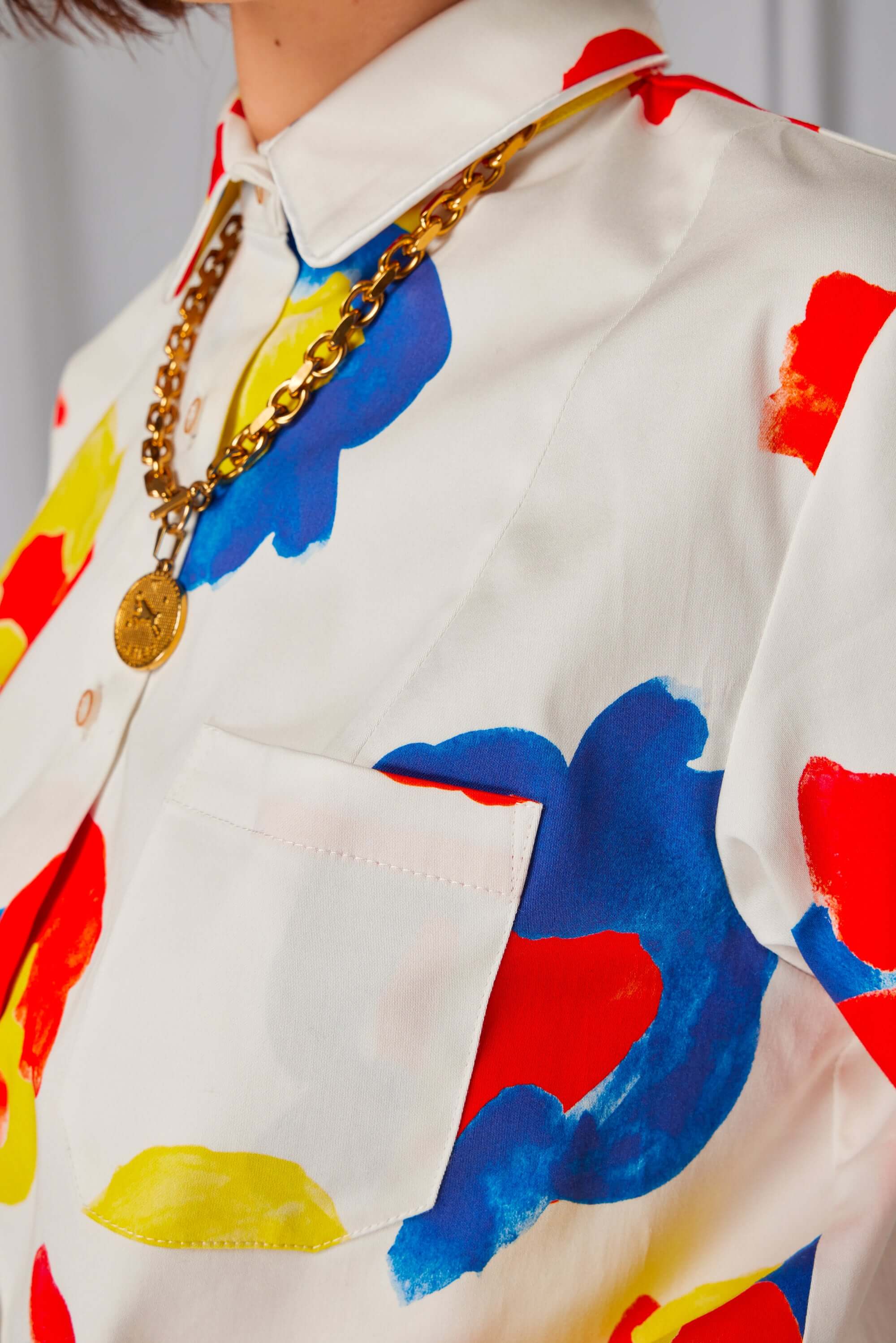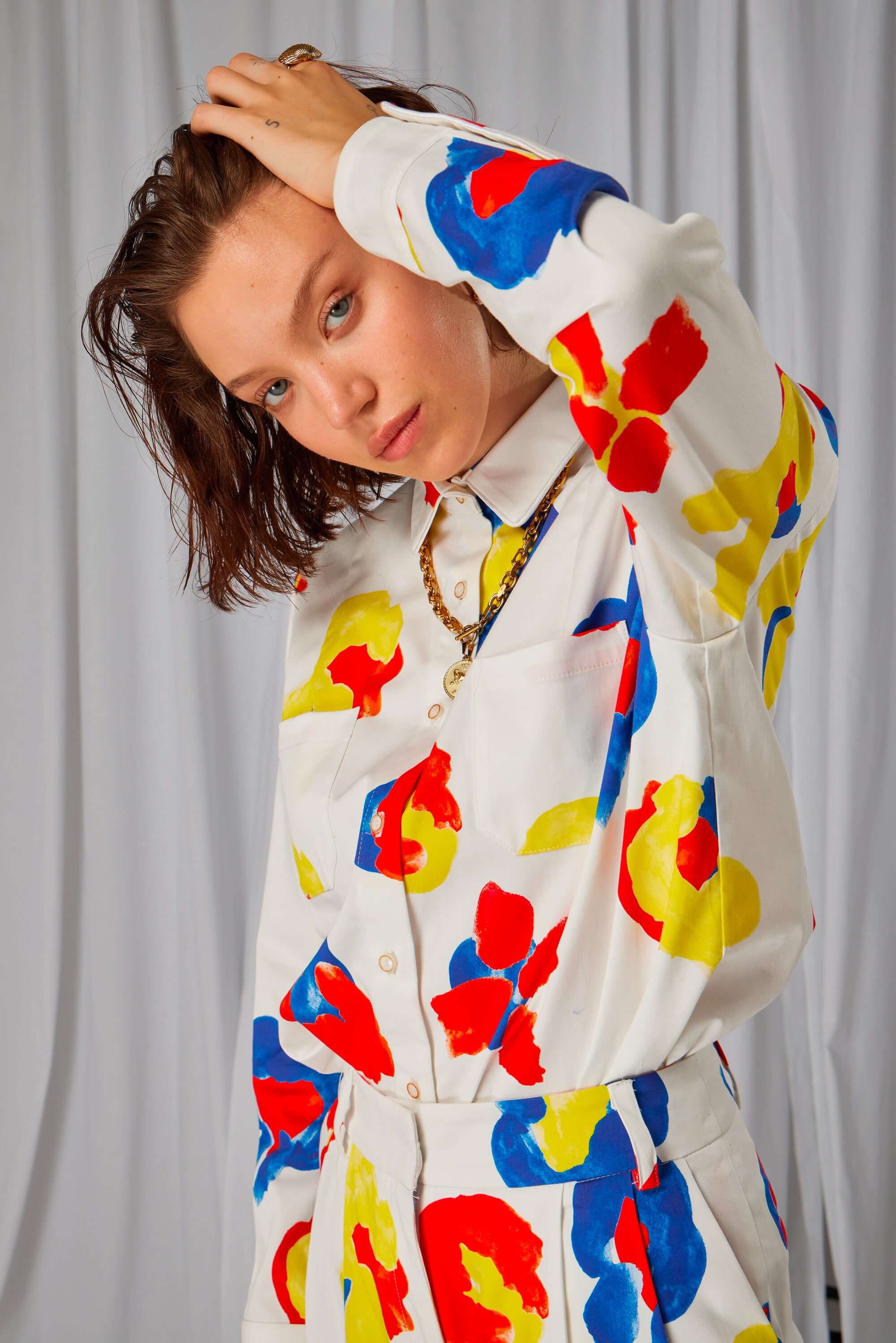 The Dori shirt is an timeless piece from Heimstone inspried by men's shirts. Made in a stretch cotton poplin, it unveils a fitted cut and low shoulders. The collar is masculine, sublimed by white piping.