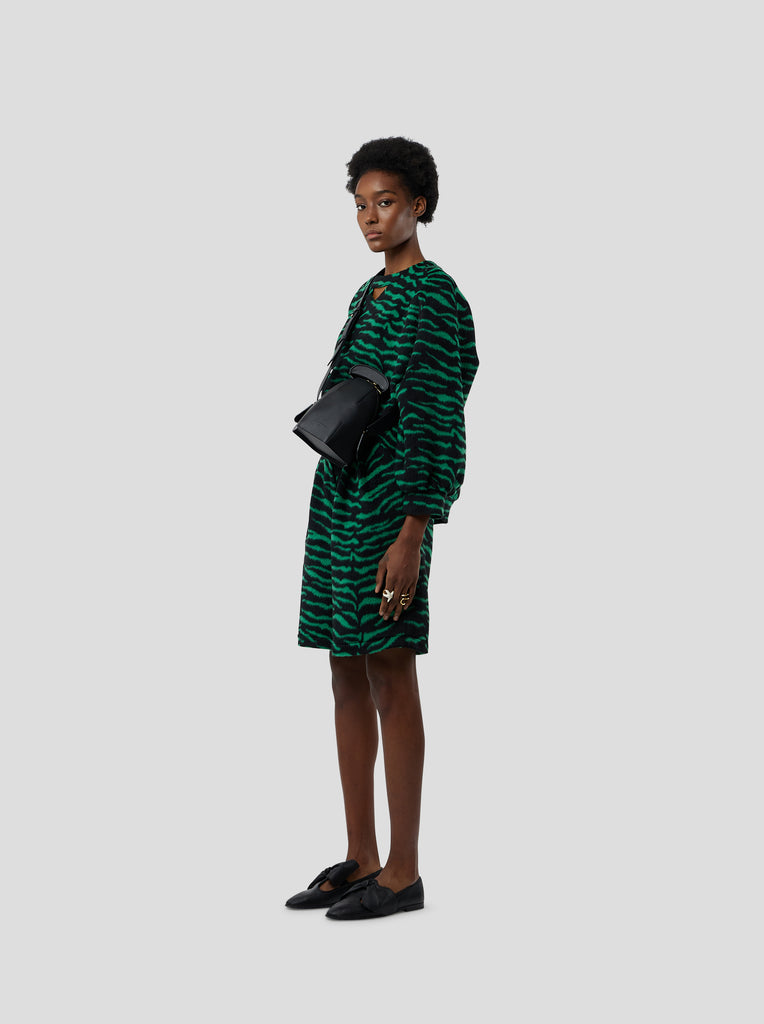 Our signature wool fabric is adorned here with a bold Forest Green and Black Zebra, making a strong style statement.