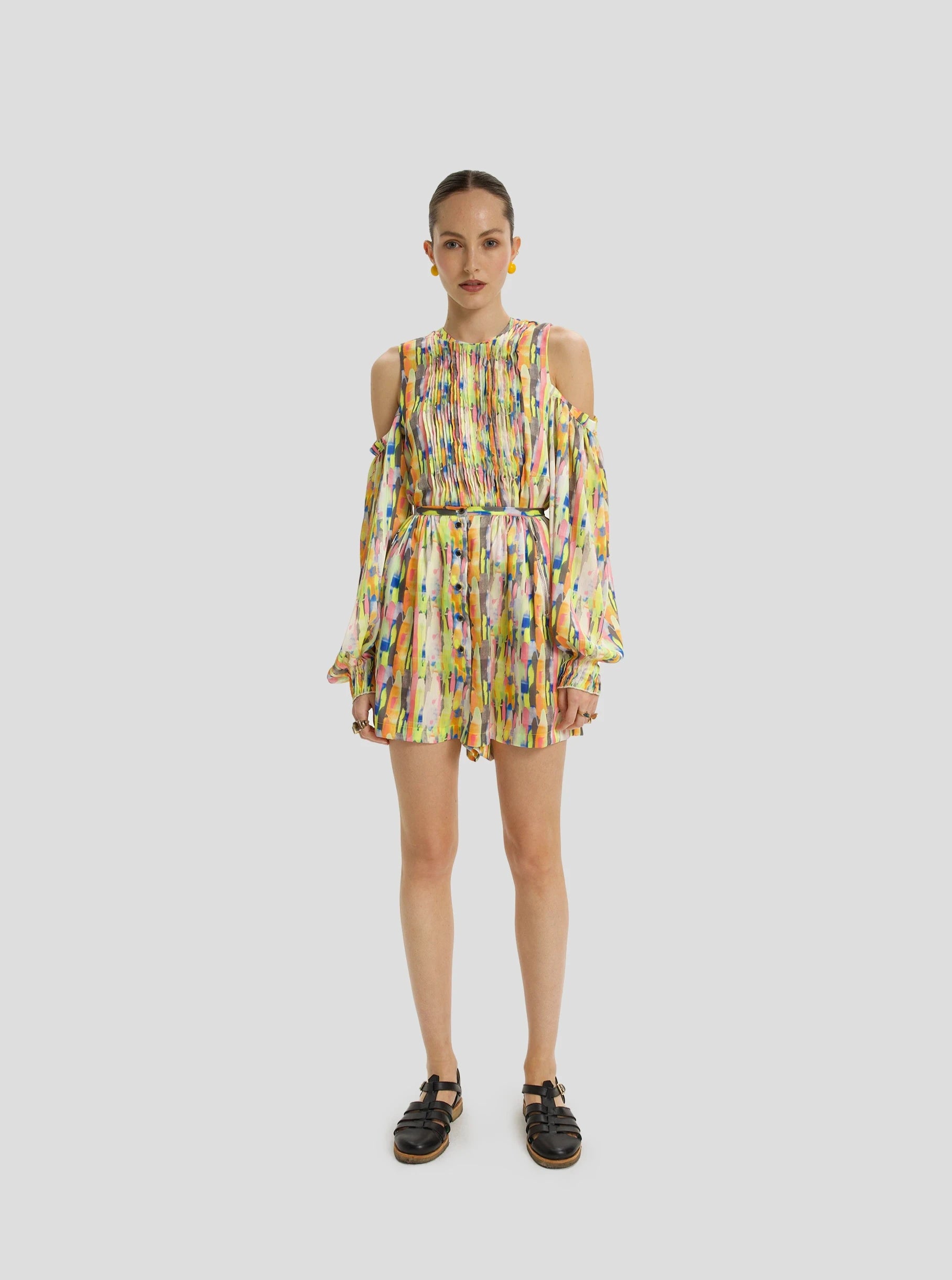 The Doll shorts are an iconic piece from the brand. Their high waist and loose yet fluid cut enhance the silhouette while elongating the legs. The crepe fabric provides a light drape for an airy look.